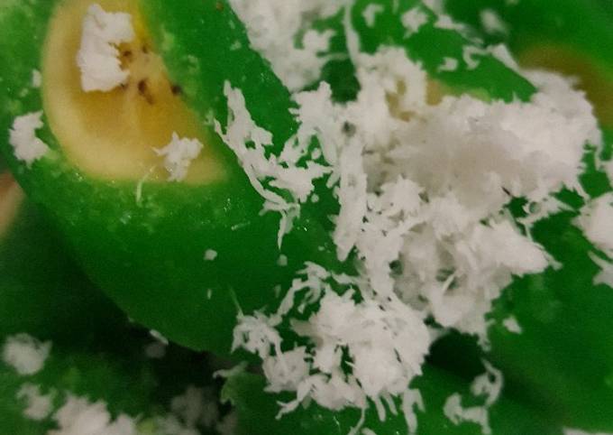 - Ambil selembar daun kemudian beri adonan singkong lalu pipihkan dan beri pisang kemudian tutup pisang dengan adonan lagi kemudian gulung daun dan semat dengan lidi atau tusuk gigi. Lakukan sampai adonan habis..
