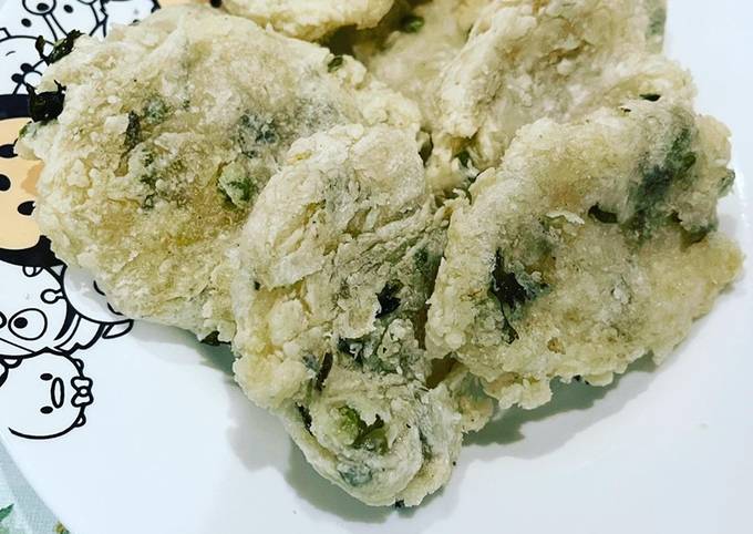 - Sediakan 2 tgkai daun bawang iris halus.