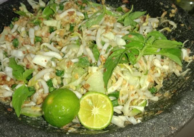 - Ulek semua bumbu sampe halus tambahkan air asem jawa kemudian campurkan sayurannya tambahkan garam dan penyedap rasa dan perasan jeruk limau..