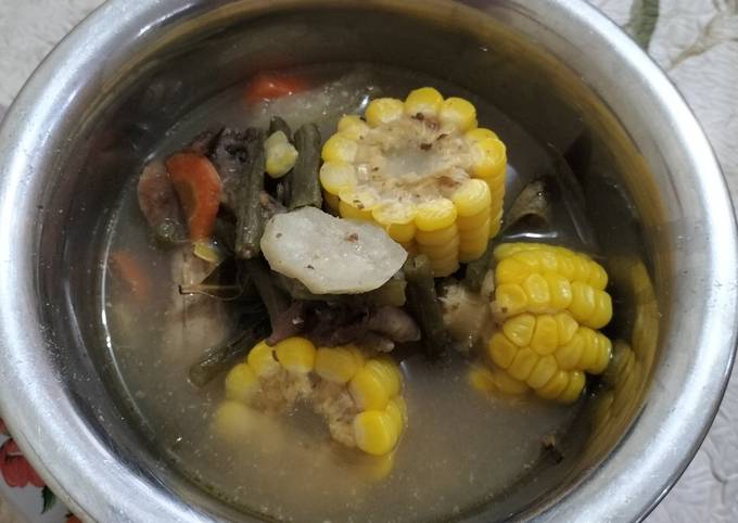 - Cek rasa,setelah ok masukan jagung dan wortel terlebih dahulu..