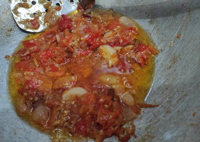 Bahan-bahan dan bumbu yang diperlukan dalam pembuatan Sambal ala Resto Alam Sunda Puncak: