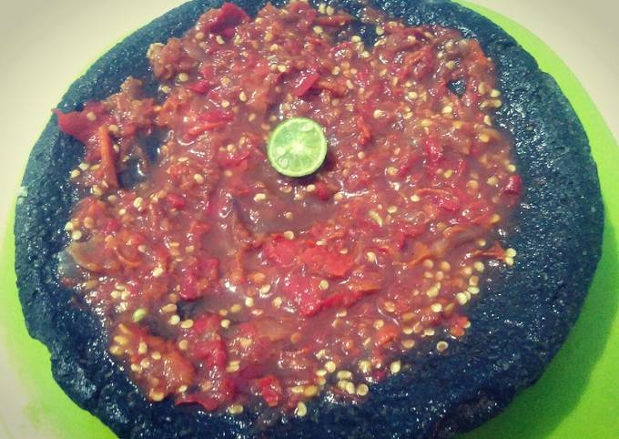 - Ulek sambal bersama terasi bakar, garam, gula merah, penyedap secukupnya dan terakhir kucuri dgn jeruk limo..sajikan.