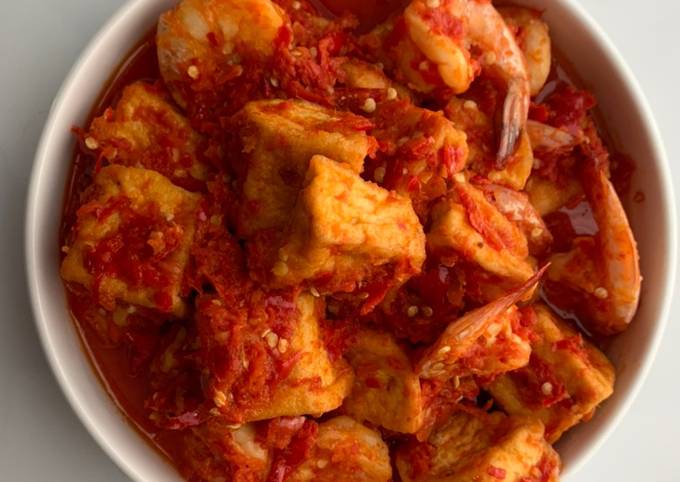 Bagaimana Menyiapkan Udang campur tahu balado, Lezat Sekali