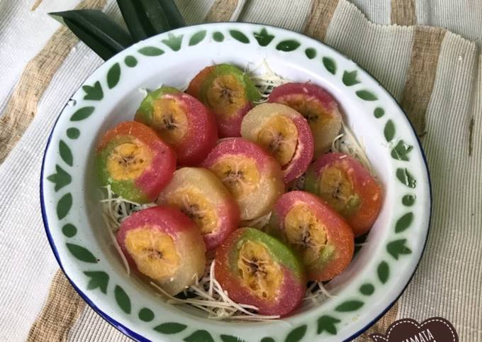 - 3. Ambil daun pisang, lalu beri adonan secukupnya taburi keju parut dan taruh pisang diatasnya lalu gulung daun pisang tadi dan lipat dikedua ujungnya semat dengan lidi.