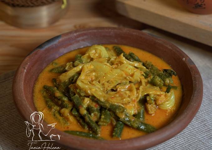 - Masukkan air, jika sudah mendidih masukkan potongan kacang panjang. masak sampai kacang panjang empuk kemudian masukkan kol dan santan instant, aduk rata. masak sampai kol matang. jangan lupa tes rasa. jika sudah ok, matikan api..