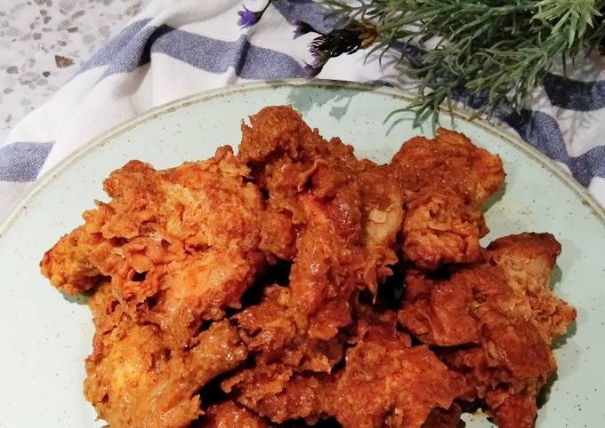 - Cuci bersih ayam dan marinasi selama 30 menit.