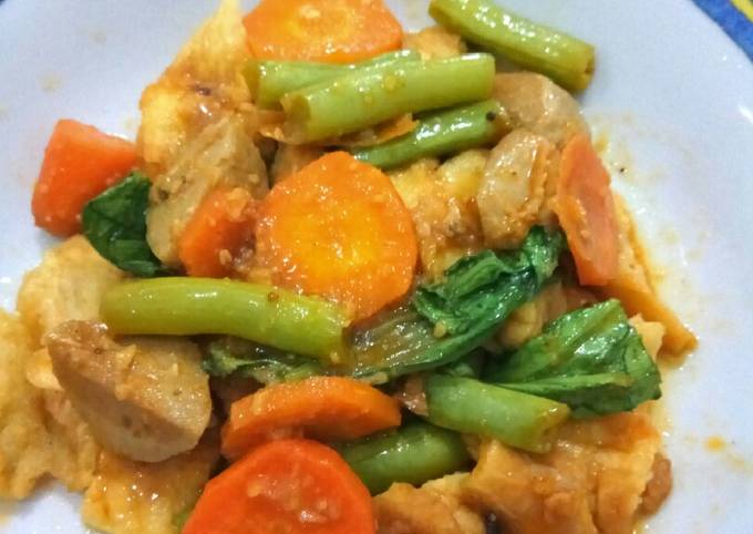 - Campurkan gorengan ke dalam sayur yang sudah dibumbui. Cicipi rasanya.