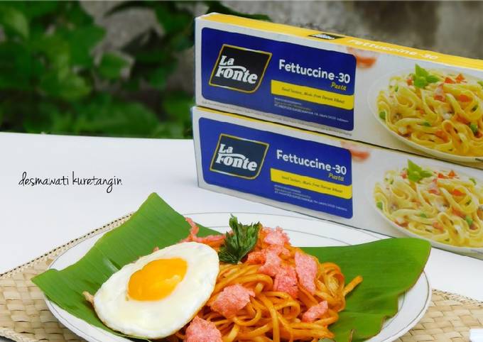 - Masukkan Pasta Fettuccine, aduk hingga rata.