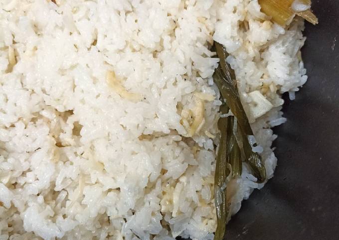 - Siapkan beras yang sudah dicuci dan diberi air (seperti masak nasi biasanya) lalu masukan tumisan bawang ke dalam air beras.