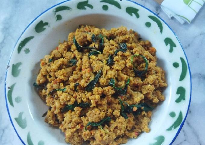 - Lalu masukka oncom, aduk rata, lalu masukkan garam, kaldu jamur dan gula merah, aduk rata, aduk masak sambil sesekali diaduk-diaduk hingga agak kering, lalu masukka daun kemangi, aduk rata, matikan api, lalu sajikan..