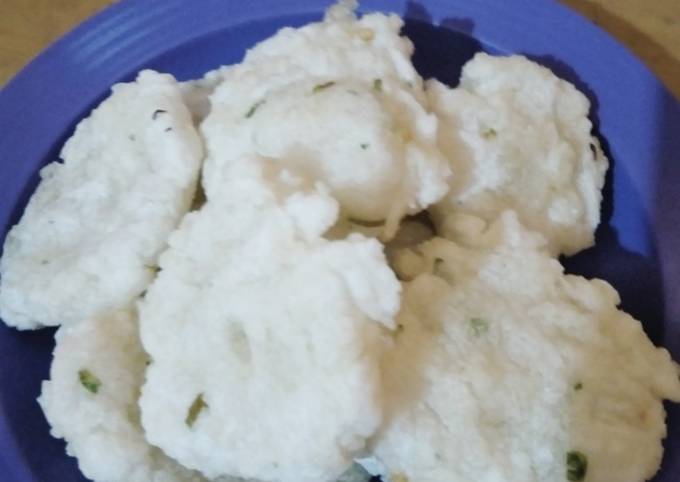 - Iris kecil bawang daun lalu campur dgn tapioka. Aduk rata lalu tuang air mendidih secara bertahap. Aduk pakai spatula..
