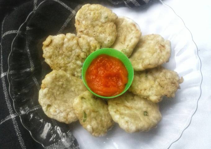 - Campur semua vahan jadi satu, aduk rata tambahkan air, uleni hingga bisa dipulung. Ambil sedikit adonan, bulatkan & pipihkan. Lakukan hingga adonan habis.
