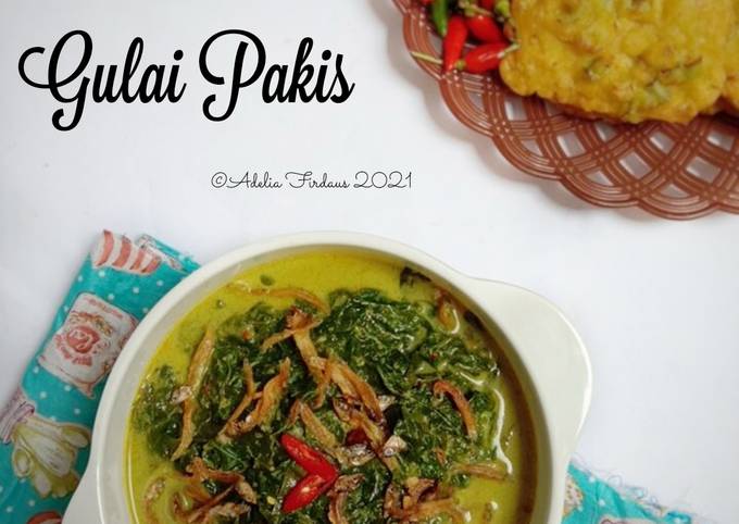 - Tuang santan,aduk²,masak hingga mendidih lalu masukkan daun pakis,masak hingga matang,beri garam dan kaldu jamur,koreksi rasa,matikan api,sajikan gulai pakis dengan taburan teri goreng.