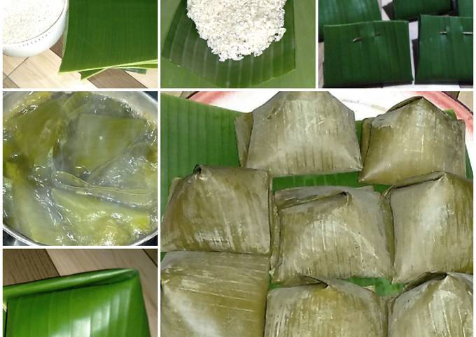 Langkah-langkah membuat Lontong Cepeng (Bentuk Piramid) Khas Jatim Metode 10 - 30 - 15 - 30:
