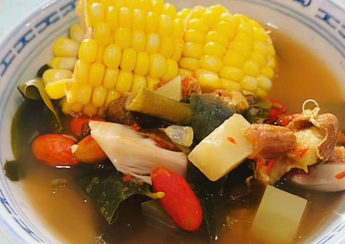- Setelah mendidih, masukkan jagung masak hingga setengah matang, masukkan sayuran lainnya. Masak hingga matang. Tes rasa...